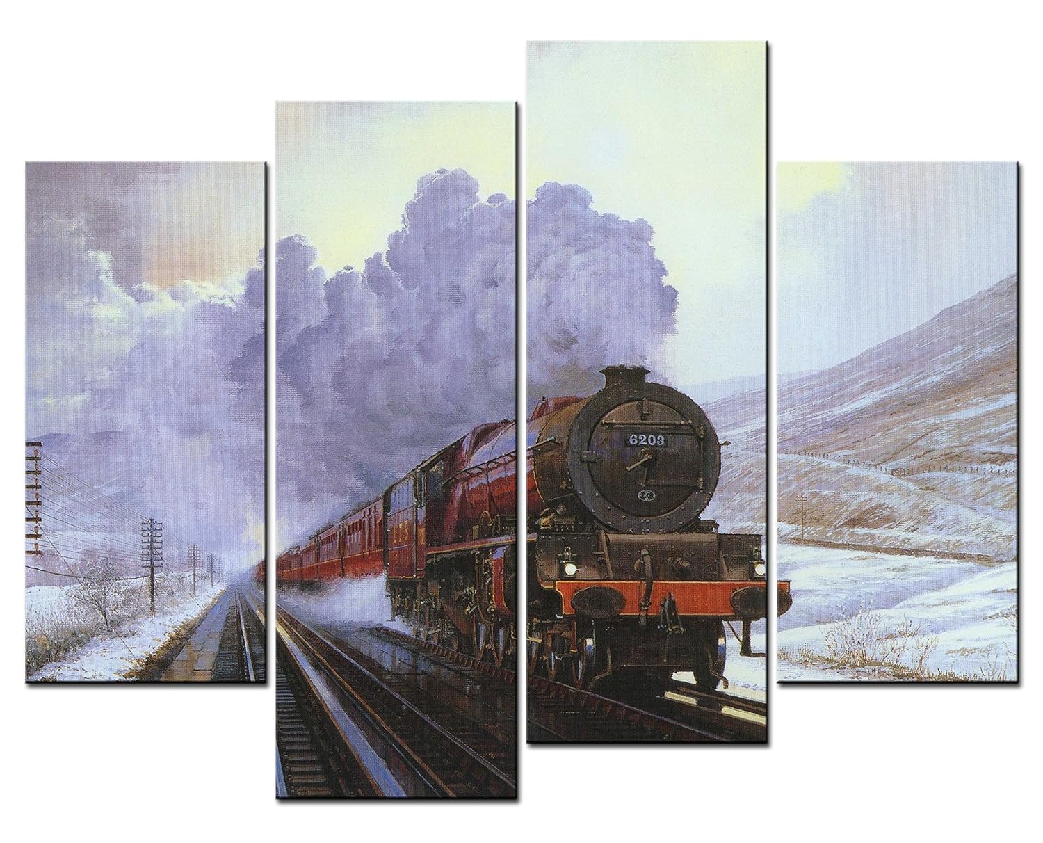 Smartwallart Vehicle Paintings Wall Art An Old Steam Train Travels In The Mountains After Snow 4 Panel Picture Print On Canvas For Modern Home