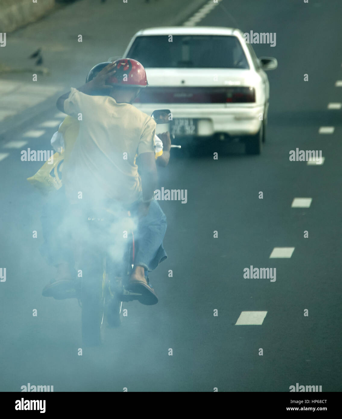 Pollution Exhaust Fumes Street Scene Moped Driver