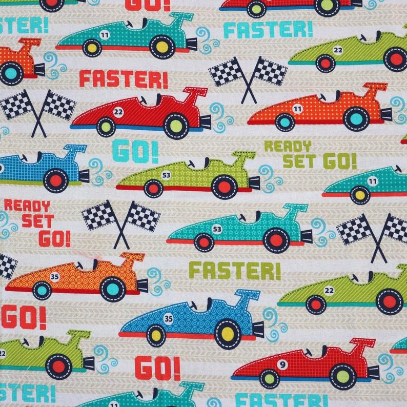 Michael Miller Faster Race Car Quilting Fabric 1 Yard
