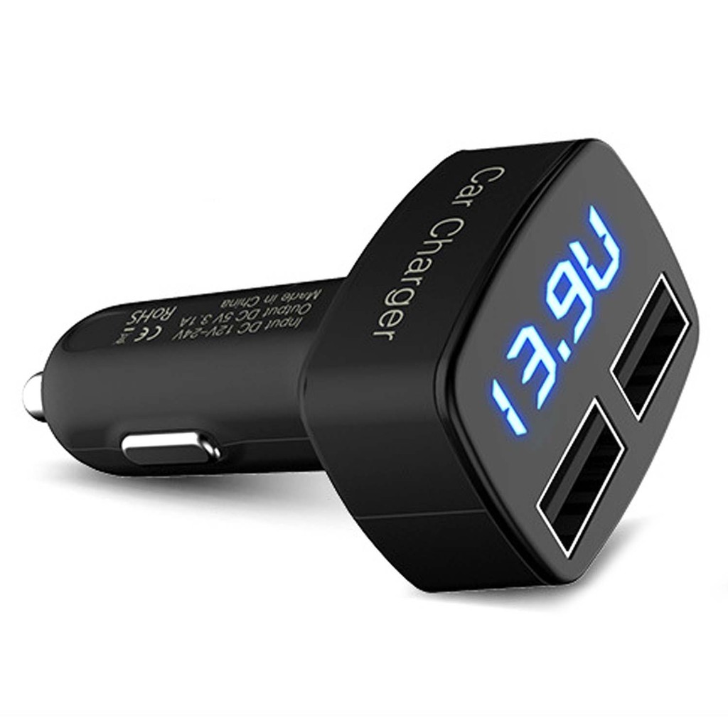 5v 3 1v 4 In 1 Dual Usb Port Phone Car Charger Usb Adapter With Led Display Battery Voltage Current Temperature Black