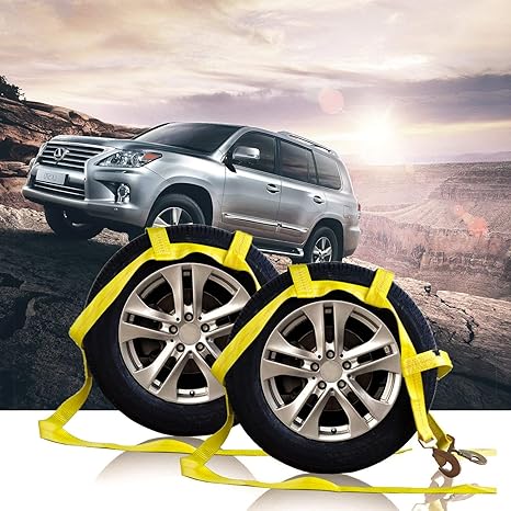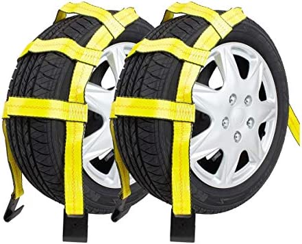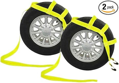 Jchl Tow Dolly Basket Straps With Flat Hooks 2 Pack Yellow Car Wheel Straps Universal Vehicle Tow Dolly Straps System Fits 15 19 Tires Wheels
