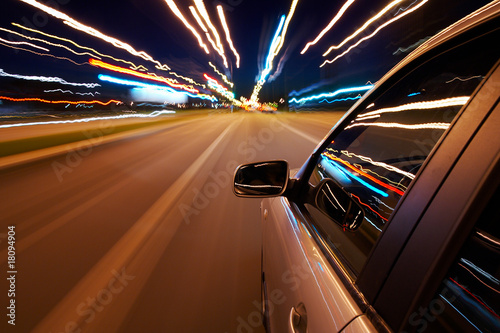 Stock Photography Car Driving Fast In The Night City