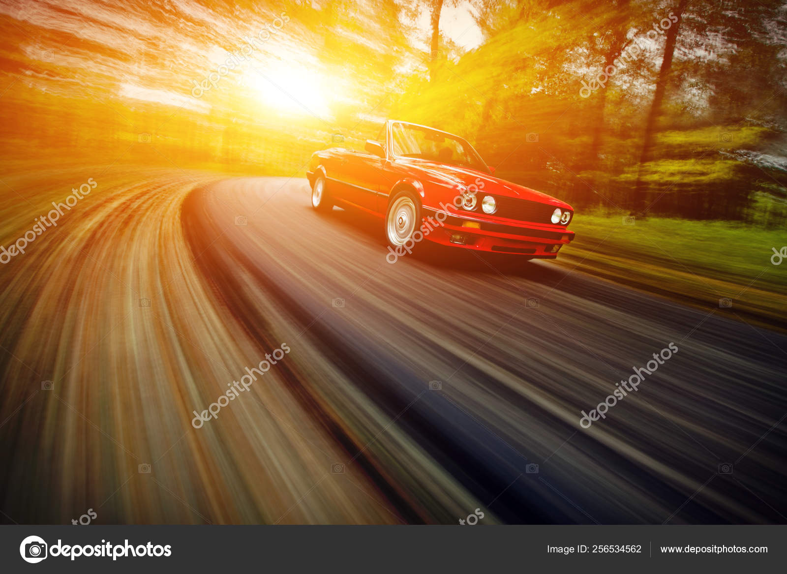Classic Red Convertible Sport Car Driving Fast Open Road
