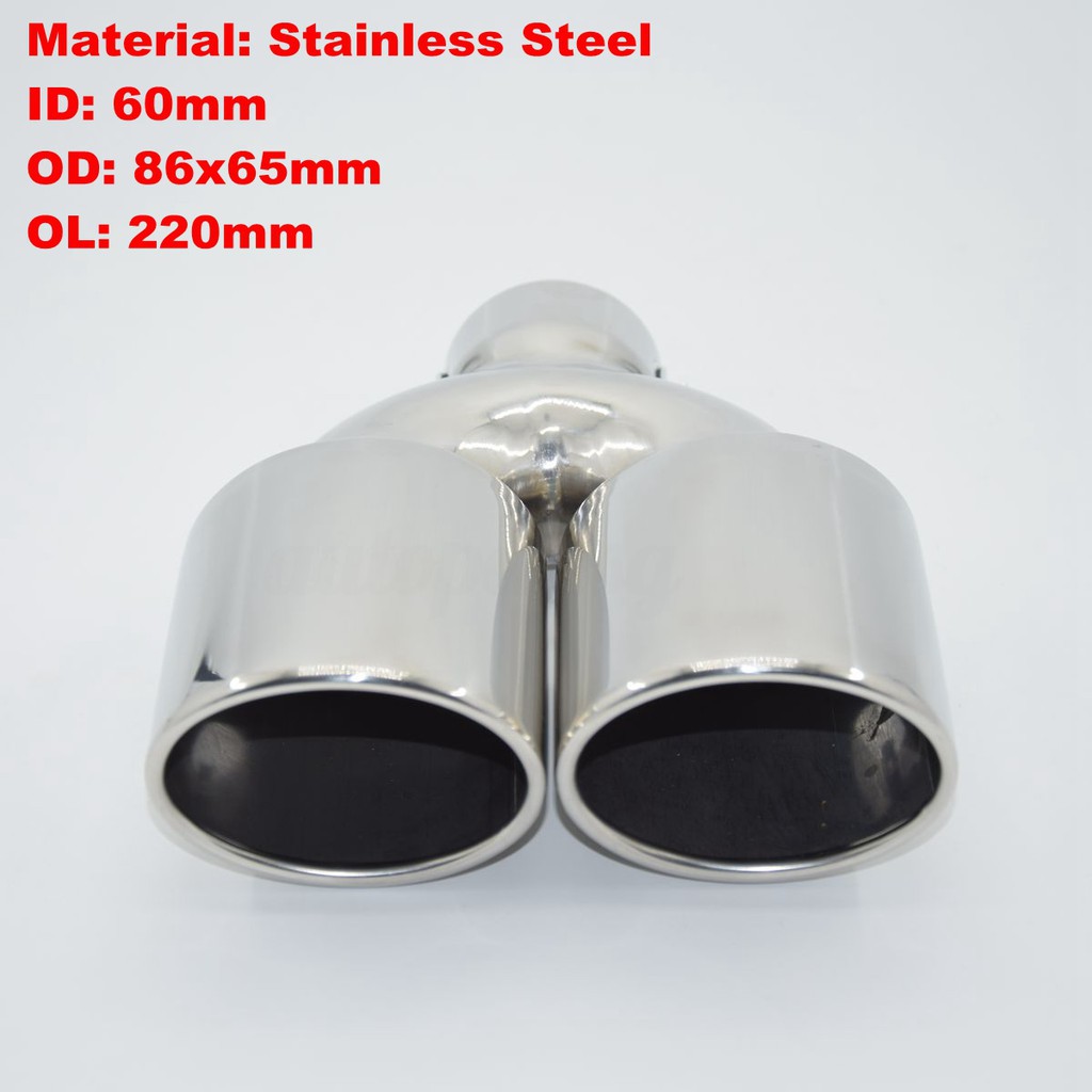 Universal 60mm Inlet Round Tail Dual Tip Exhaust Pipe Car Muffler Silver Chrome