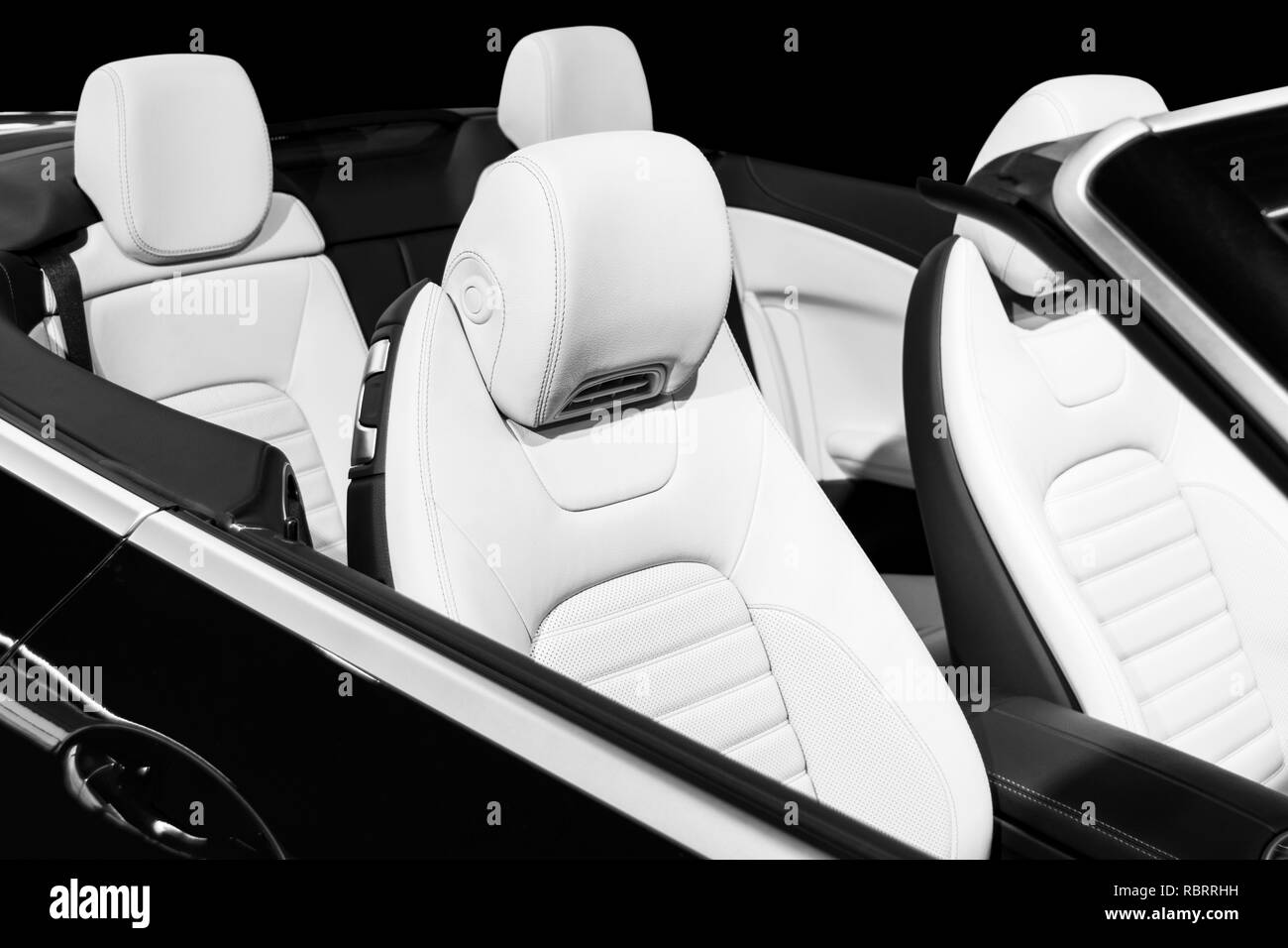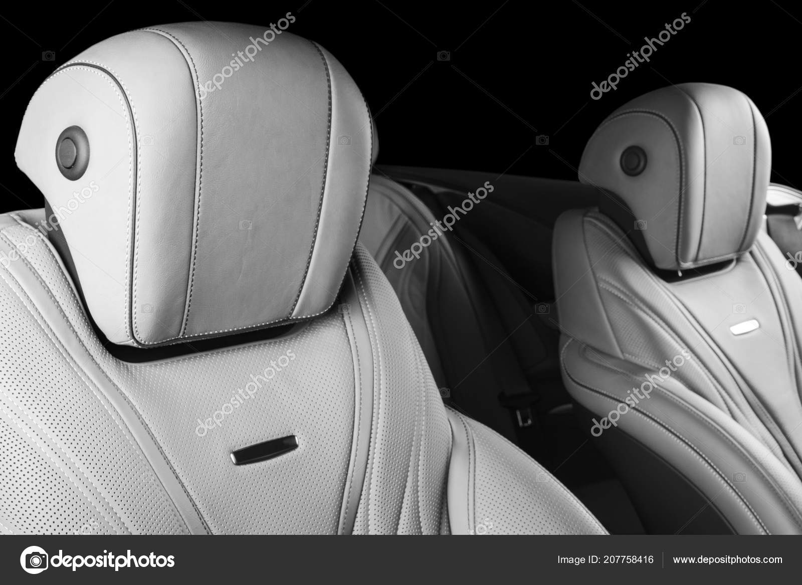 White Leather Interior Of A Car Perforated Leather Comfortable Seats With Stitching Isolated On Black Background Car Interior Details Car Detailing