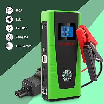 Pushidun Portable Car Jump Starter 600a 12000mah Auto Battery Booster Jumper Pack Up To 5 0l Gas 2 0l Diesel External Power Bank 2 Smart Charging