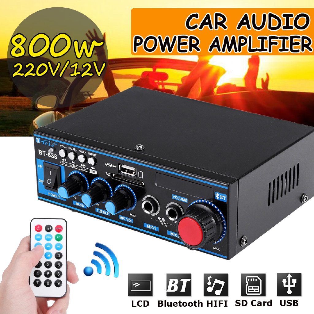 Hifi Audio Amplifier Digital Lcd Fm Bluetooth Speaker Dual Microphone Karaoke
