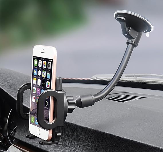 Car Phone Mount Windshield Long Arm Clamp Ivoler Universal Dashboard With Double Clip Strong Suction Cup Cell Phone Holder Compatible Iphone 11 Pro