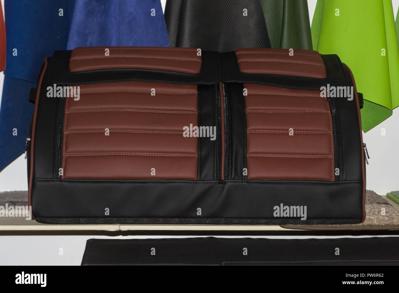 Handmade Brown And Black Leather Organizer Bag For A Car