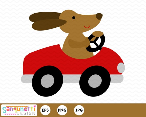 Dog Driving Car Clipart Transportation Digital Art Instant Download