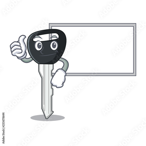 Thumbs Up With Board Car Keys Cartoon Isolatedon On Shape