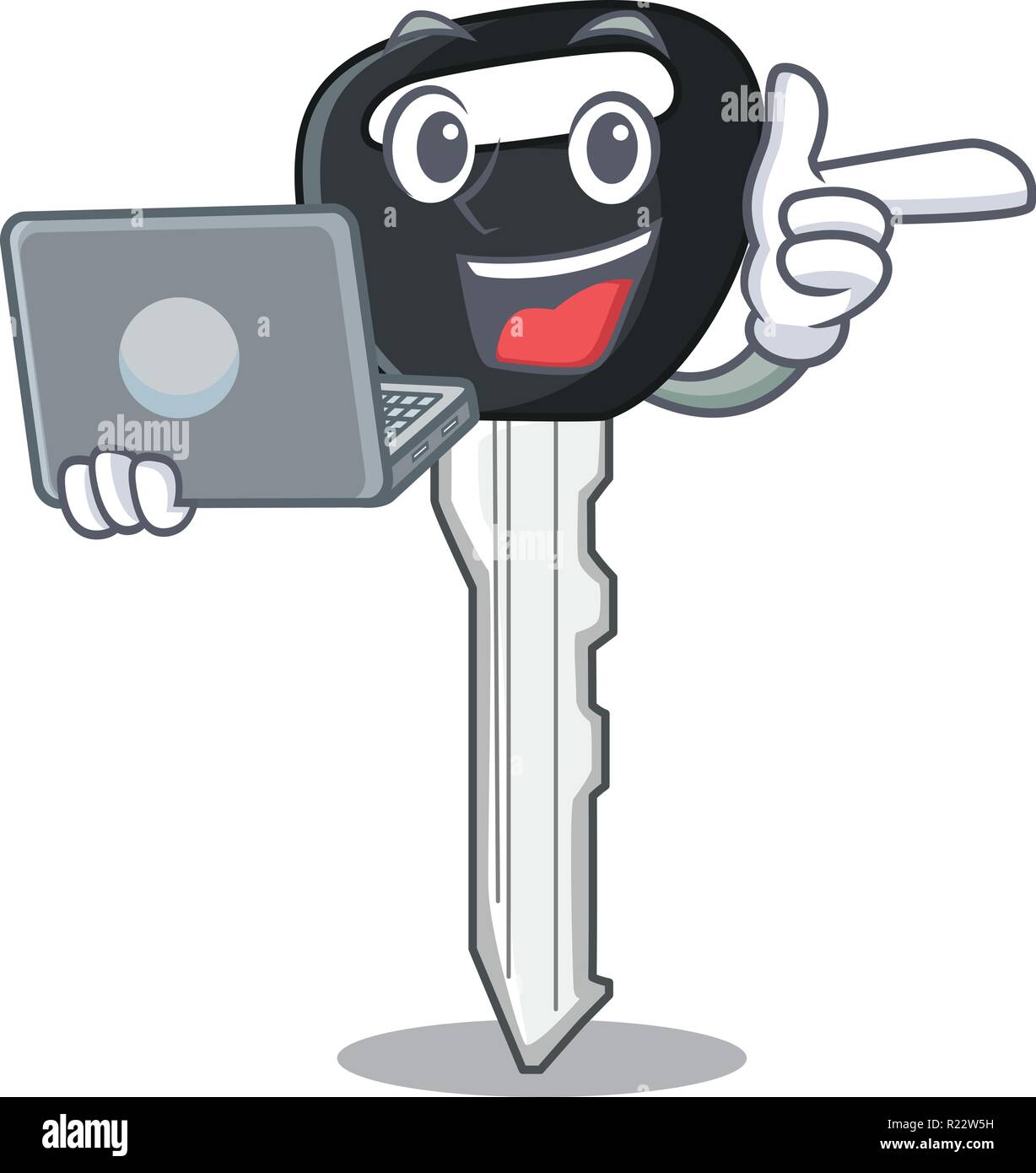 With Laptop Car Keys Cartoon Isolatedon On Shape Stock