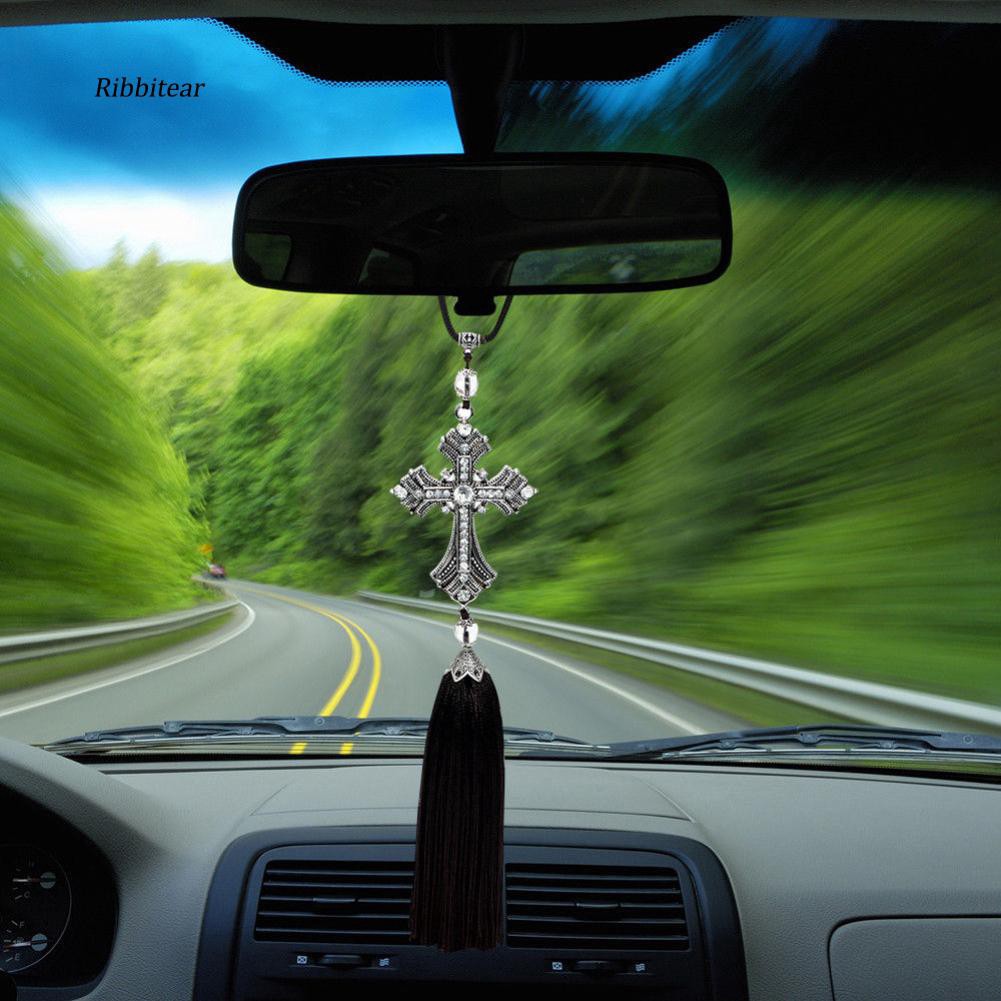 Rbtr Rhinestone Cross Jesus Christian Car Rear View Mirror Hanging Pendant Decor