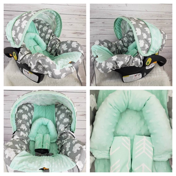 Elephants And Arrows Mint Baby Car Seat Cover Custom Order Comes With Free Strap Covers