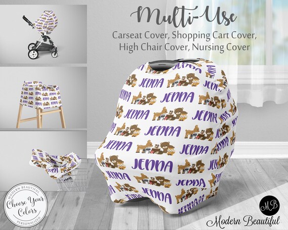 Woodland Animals Car Seat Canopy Cover Boy Or Girl Custom