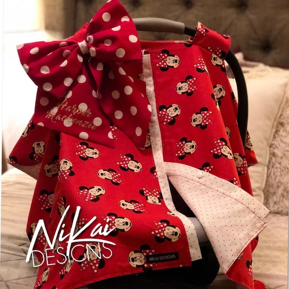 Carseat Canopy Car Seat Cover Blanket Tent Carrier Cover Baby Infant Carrier Cover Personalized W Bow Minnie Mouse
