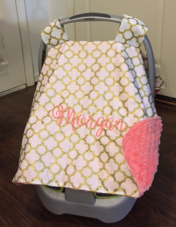 Baby Girl Car Seat Canopy With Monogram Car Seat Cover Carseat Cover Baby Girl Shower Gift Car Seat Blanket Gold Quatrefoil Lattice