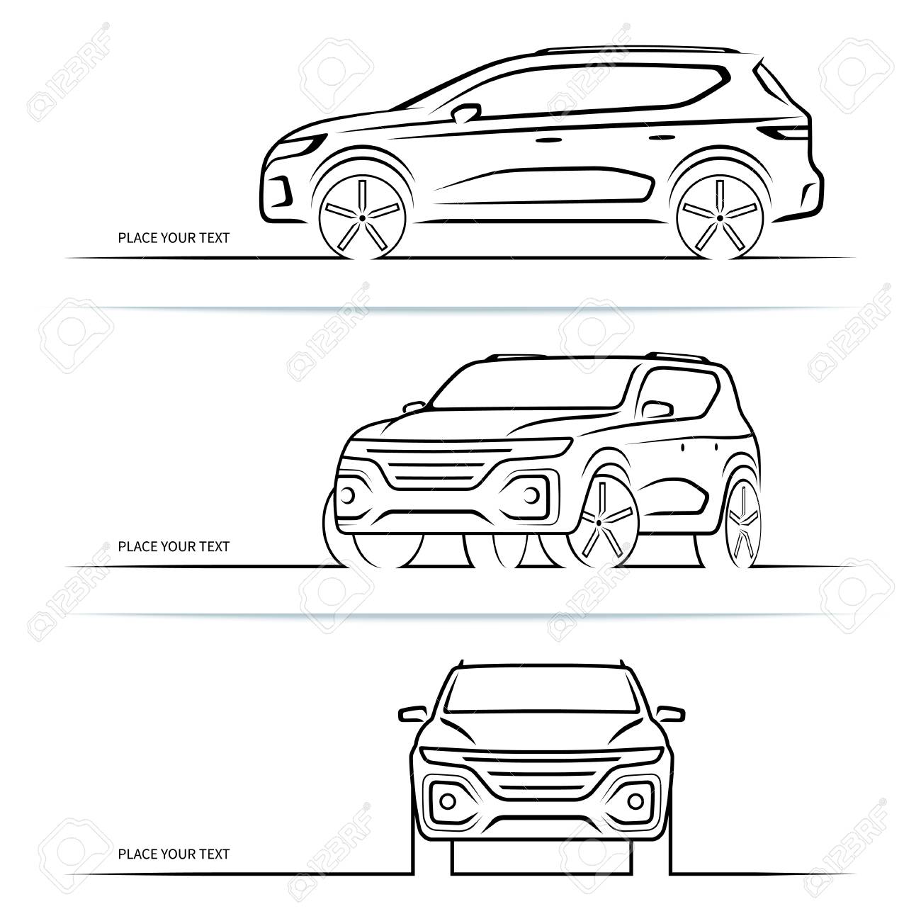 Set Of Vector Car Silhouettes Outlines Contours Front Side