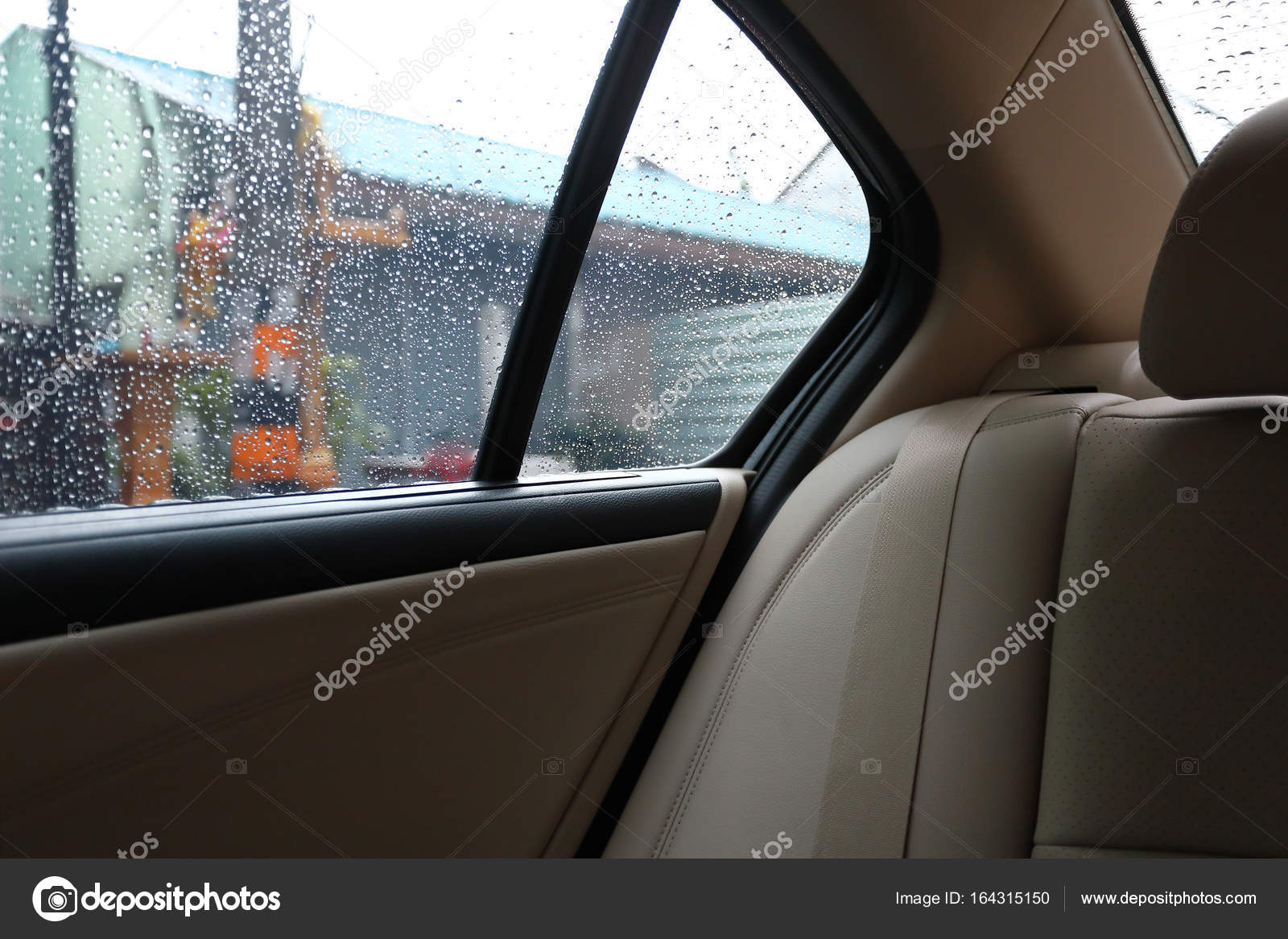 Back Seat Inside Vehicle Car With Rain Drop On Window