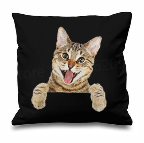 Us 13 19 12 Off Funny 3d Cat Cushion Cover Novelty Kitty Cats Throw Pillow Case Cool Kitten Car Seat Kid Room Decor Square Cat Lover Pet Gifts In