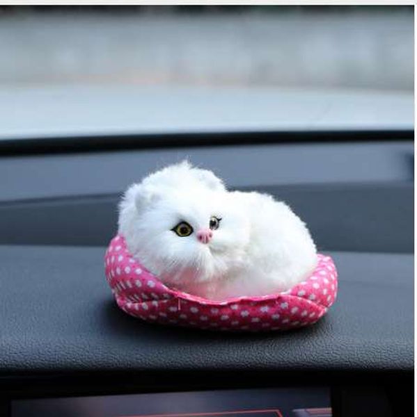 Car Ornaments Plush Sounding Simulation Mini Nest Cat Decoration Kids Toy Cute Kitten Automobile Interior Decor Accessories Gift Car Seat Interior