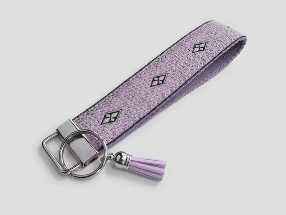 Wristlet Keychain With Tassel Cute Car Key Lanyard Lavender Key Fob Fabric Keyfob Housewarming Gift Short Lanyard Christmas Gift