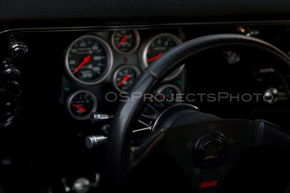 Vintage Car Interior Photography Classic Car Fragment Wall Art Retro Car Picture Steering Wheel