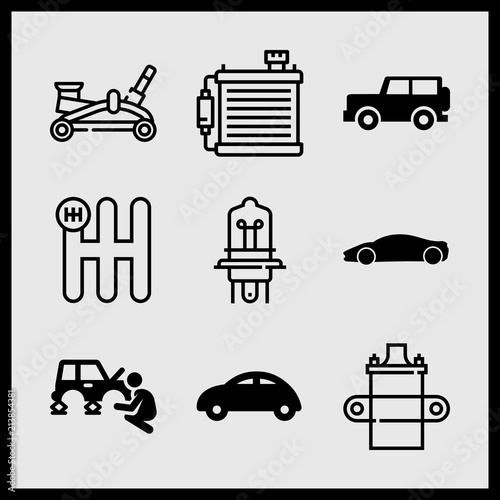 Simple 9 Icon Set Of Car Related Gear Car Parts Sport