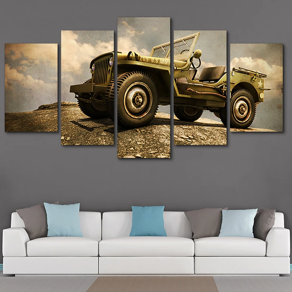 Us 5 35 44 Off Wall Artwork Modular Poster Printed Modern Canvas 5 Panel Retro Car Framework Hd Living Room Pictures Painting Home Decoration In