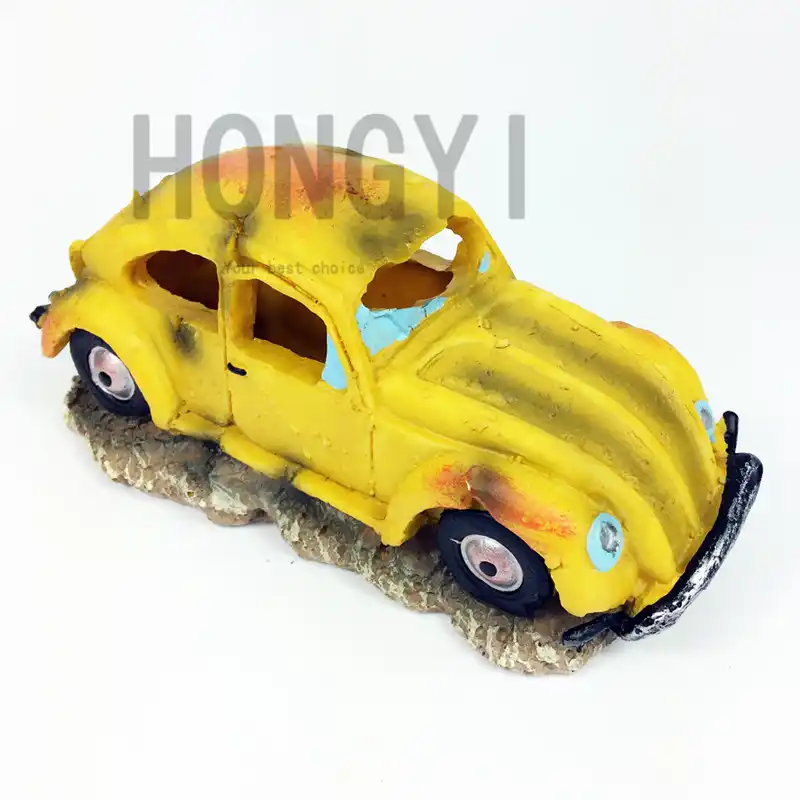 Hongyi 1 Piece Resin Fish Tank Ornament Cave Aquarium Decoration Damaged Car Crafts Ornaments Air Pump Car Toy