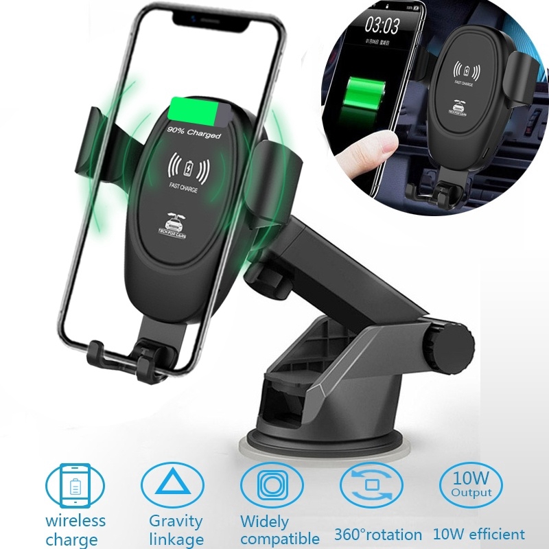Wireless Car Charger Qi Fast Charging Car Phone Holder Compatible Iphone Samsung Huawei And All Smartphones