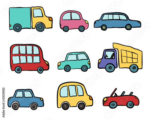 Big Set Of Hand Drawn Cute Cartoon Cars For Kids Design