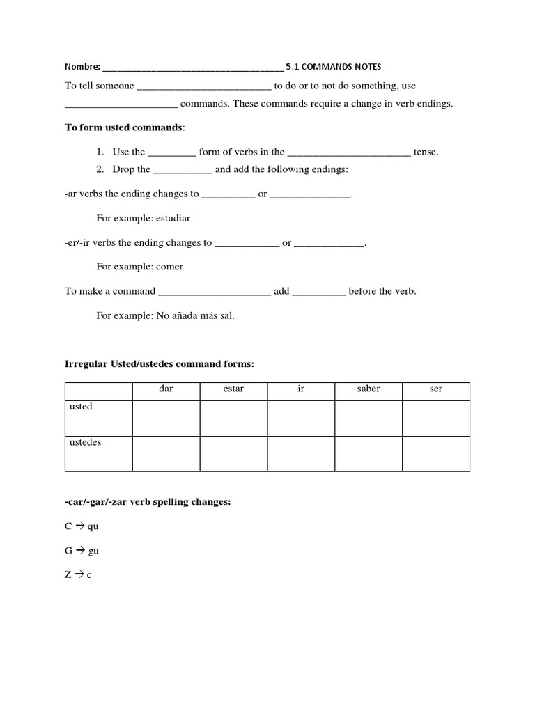 Guided Notes Page Preterite Tense Car Gar Zar Verbs