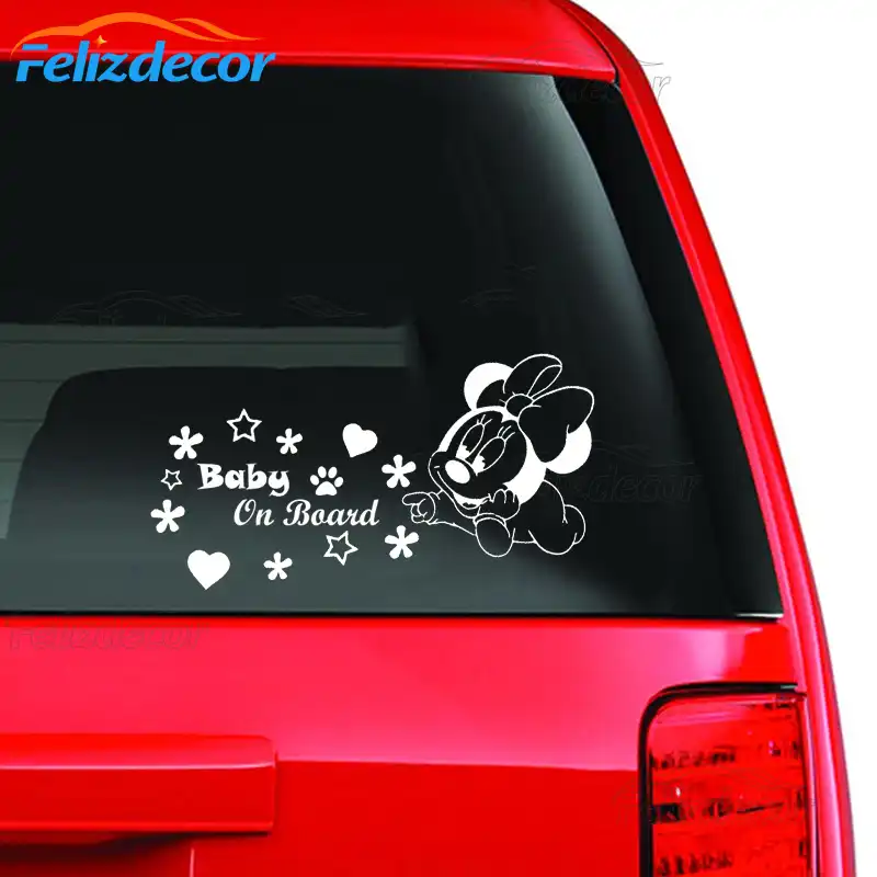19 10cm Baby Girl Minnie Mouse Vinyl Car Decals Baby On Board Sign Sticker Car Window Decor White Black L804